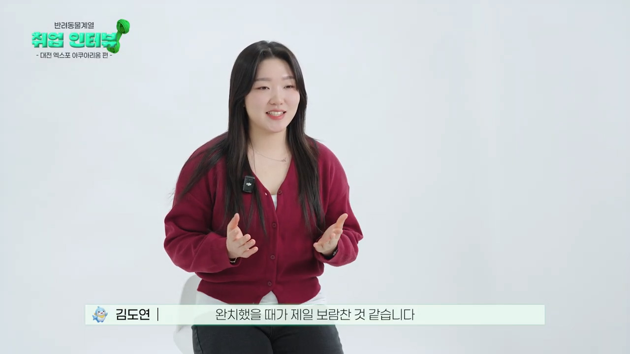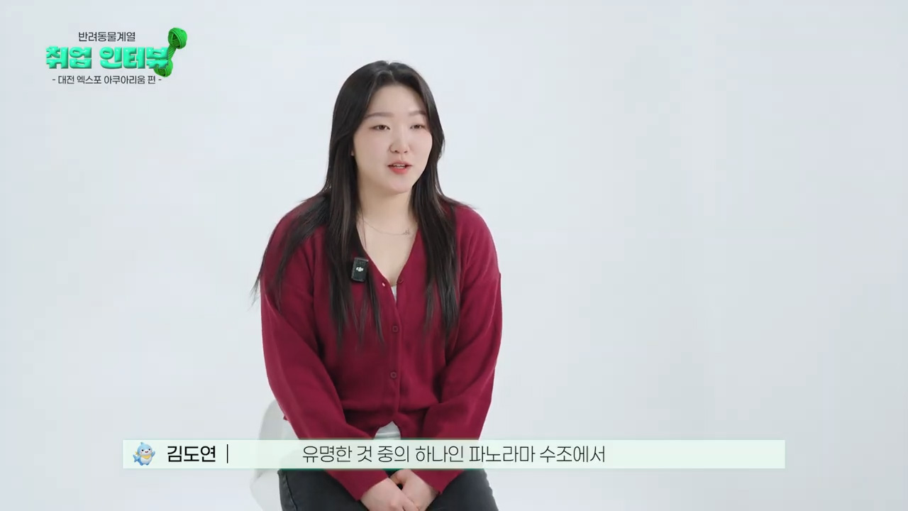 마지막으로 아쿠아리스트로서 자신만의 이름 석 자를 확실히 알리고, 소중한 생명을 지키며 앞으로도 열심히 일하겠다는 다짐도 잊지 않았습니다. 김도연 선배의 최애 동물과 가장 까다로운 동물 이야기를 비롯해 더욱 자세한 인터뷰는 아래 영상을 통해 만나보실 수 있으니 꼭 확인해 보시기 바랍니다.서울호서 반려동물계열을 졸업하고 현재 대전 엑스포 아쿠아리움에서 아쿠아리스트로 활약하고 있는 김도연 선배의 생생한 이야기를 전해드립니다.