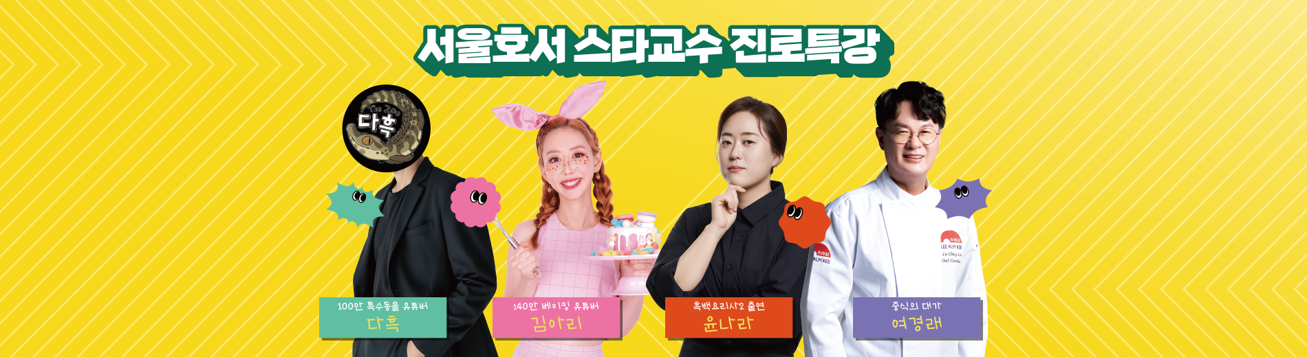호텔조리계열에서는 ‘흑백요리사 시즌2’ 최종 TOP5에 오른 윤나라 교수가 ‘윤주모 조리특강’을 진행하며, 중식 분야에서는 여경래 셰프의 체험특강도 준비됐다.