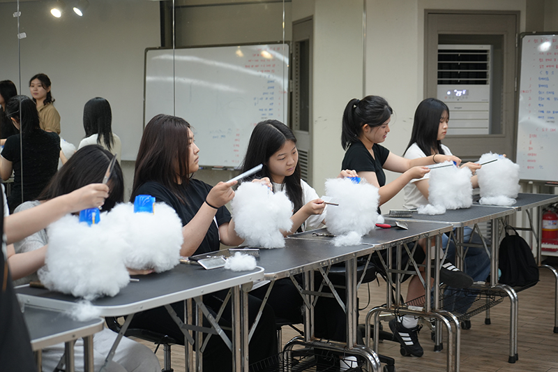 교수님의 시연이 끝난 뒤엔 체험특강 참여 학생들이 직접 미용 도구를 통해 실습해 보는 시간을 가졌습니다.