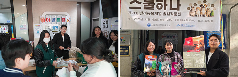 지난 7일, 서울호서 반려동물계열에서 제21회 졸업작품전이 열렸습니다. 졸업을 앞둔 재학생들이 2년 동안 쌓아온 실력을 한껏 펼쳐 보이는 자리였는데요. 배움의 여정을 마무리하며 전공별로 다채롭게 꾸며진 전시 현장으로 함께 떠나볼까요?