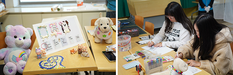 반려동물매개치료 과정의 전시 공간에서는 반려동물 키링 제작 등 다양한 체험 프로그램에 참여하며 손·눈 협응력 강화와 정서적 반응 촉진 등 매개치료 활동이 지닌 긍정적 효과를 자연스럽게 체감할 수 있었습니다.