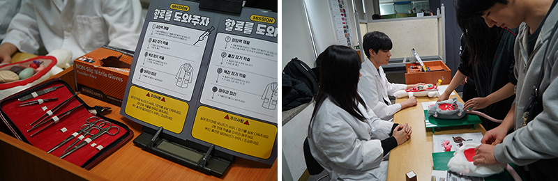 또한 학교 동물병원 내 구비하고 있는 고주파와 레이저 치료가 어떤 기계로, 어떤 과정을 통해 사용되는지도 직접 체험이 가능했습니다.