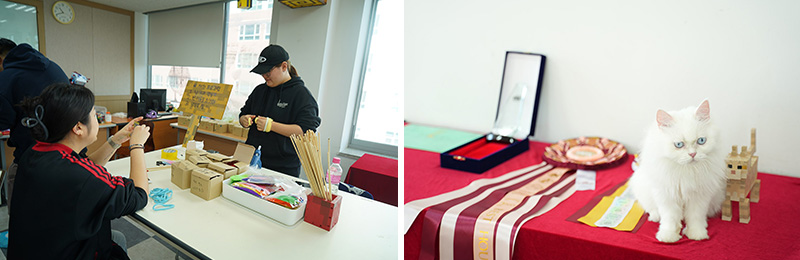 또한 반려묘 장난감 만들기, 초상화 제작, 팔찌 만들기 등 체험 활동도 방문객들의 큰 호응을 얻었습니다. 전 과정이 참여한 다채로운 반려동물계열 졸업작품전은 교수진과 학생들, 외부 참객들로 연일 북적이며 뜨거운 관심 속에서 진행되었습니다.