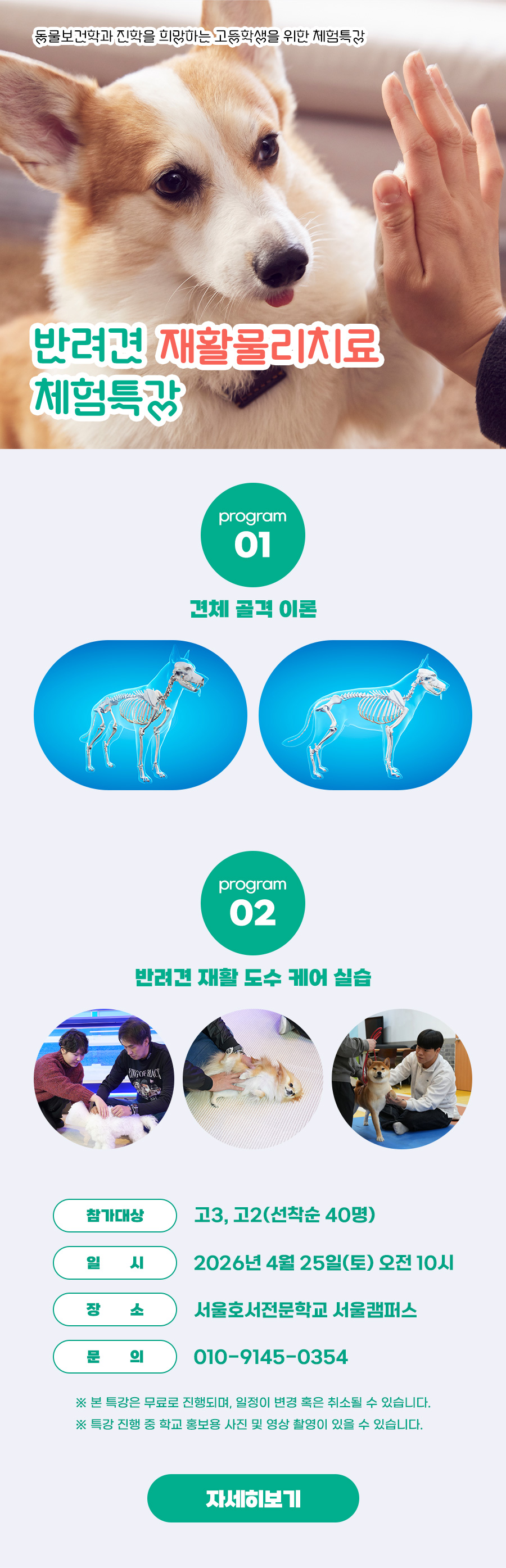 반려견 재활도수케어를 배울 수 있는 반려견 재활물리 체험특강에 여러분을 초대합니다.