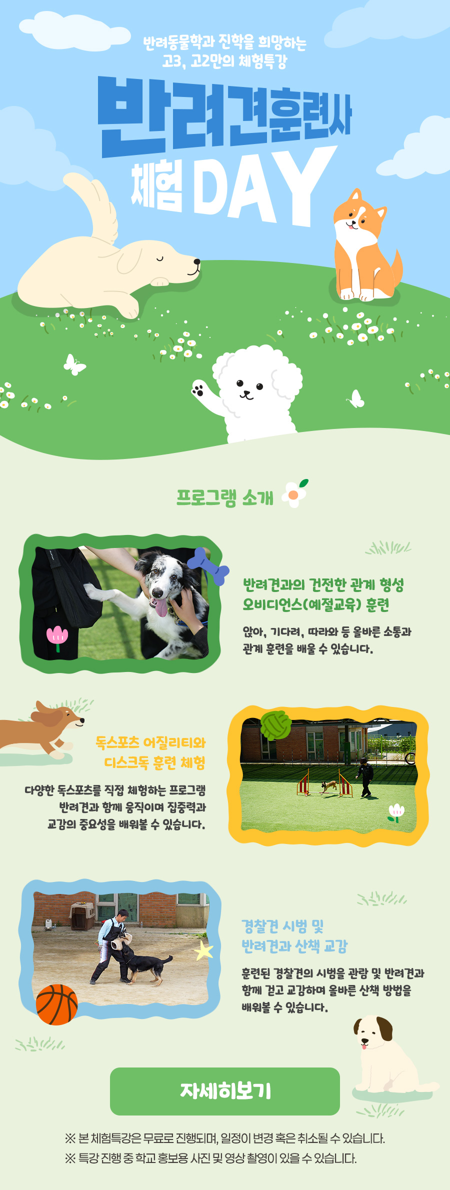 반려견 훈련사를 체험해볼 수 있는 반려견 훈련 체험특강에 여러분을 초대합니다.