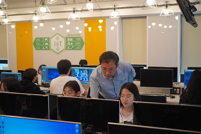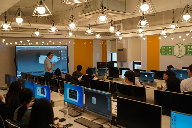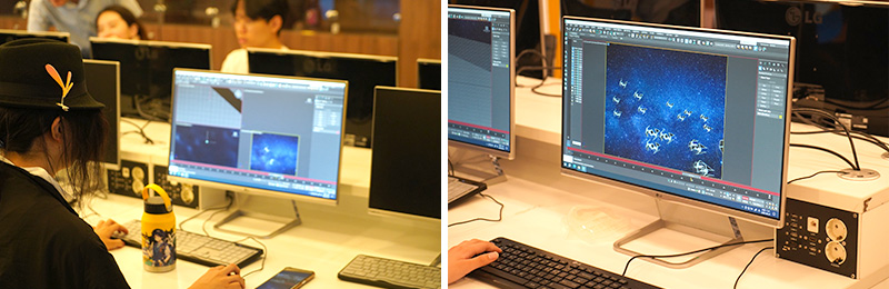 우선 웹툰애니메이션계열 교수님의 제작 시연이 진행된 뒤 본격적으로 학생들이 직접 만들어보는 시간을 가졌는데요. 교수님의 쉽고도 재밌는 설명을 경청하던 학생들은 이내 프로그램에 적응하여 자신들만의 3D 애니메이션을 제작해보는 것은 물론, 교수님의 1:1 피드백 지도를 받으며 완성해나갈 수 있었습니다.