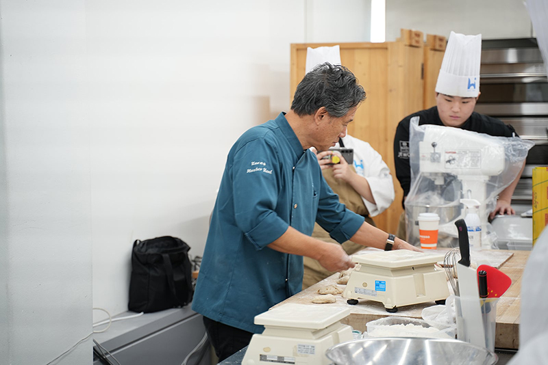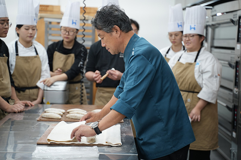 안창현 교수님은 20년 넘게 천연효모빵 연구해 오셨다고 하는데요. 아낌없이 전수해 주신 덕분에 명장의 기술과 노하우를 체험할 수 있었습니다. 학생들은 눈앞에서 보이는 교수님의 시연을 보며 눈으로 익히고 필기도 하며 집중하는 모습을 보였습니다.
