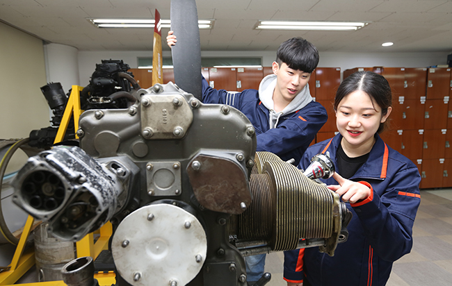 산학협력기관 (티웨이 항공, 제주 항공, STX에어로서비스 등) 실무실습, 파주캠퍼스 정비동 실무실습 진행
