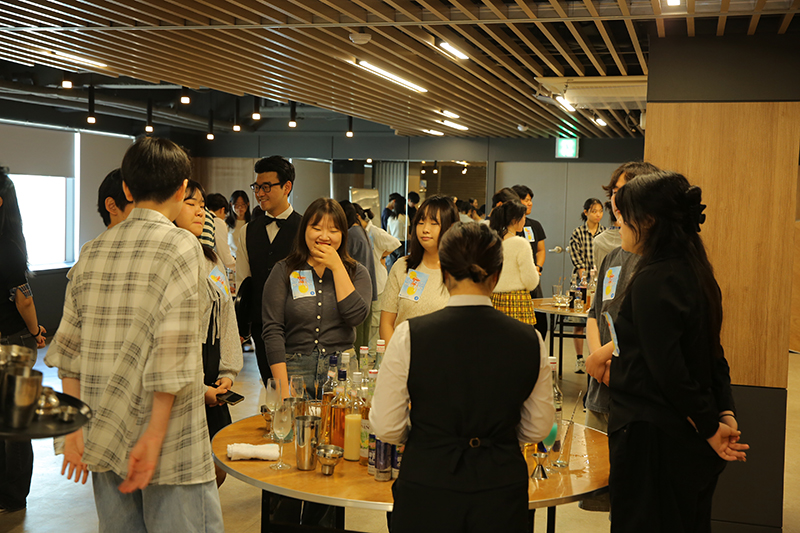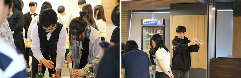 각자의 개성을 담아 완성한 칵테일을 시음하는 학생들의 얼굴에 만족함이 가득했는데요, 직접 만든 칵테일의 맛을 음미하며 보여준 뿌듯한 표정은 이번 체험이 단순한 흥미를 넘어서, 바텐더라는 전문 분야에 한 걸음 더 가까워지는 의미 있는 경험이었음을 보여주었습니다.