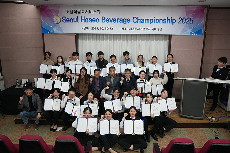 가을의 끝자락, 선선한 가을바람과 함께 돌아온 SHBC 2025가 열렸습니다. SHBC 2025는 Seoul Hoseo Bevarage Championship의 약자로 호텔식음료서비스계열에서 매년 개최하는 경연 대회입니다. 이 자리를 축하해주기 위해서 식음료 분야의 꿈을 키워가는 고등학생 참가자들부터 후배들의 무대를 응원하기 위해 찾아온 졸업생들까지, 한자리에 모여 서로의 열정을 나누는 뜻깊은 축제가 되었습니다.