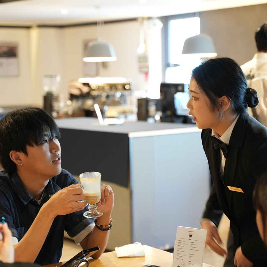 학생들은 그동안 쌓아온 실무 경험을 바탕으로 데일리바를 찾은 방문객들에게 자연스럽게 자리 안내, 메뉴 설명, 음료 제조, 서비스 응대를 진행하며 능숙한 모습을 선보였습니다.