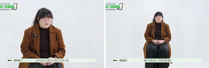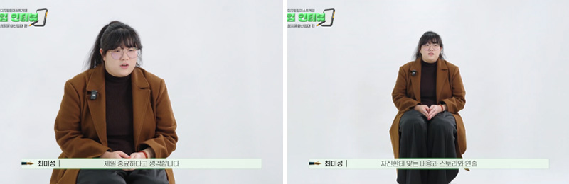 이런 부분은 서울호서에서 수업을 들으며 자연스럽게 쌓아온 경험이 큰 도움이 됐다고 합니다. 수업 시간에 영화를 보고 감상문을 쓰거나, 직접 콘티를 짜보는 과정을 반복하면서 스토리를 구성하는 힘을 키울 수 있었다고 하는데요. 특히 졸업작품을 준비하면서 친구들과 의견을 주고받고 피드백을 나눴던 시간이 포트폴리오를 완성하는 데 큰 밑바탕이 되었다고 전했습니다.