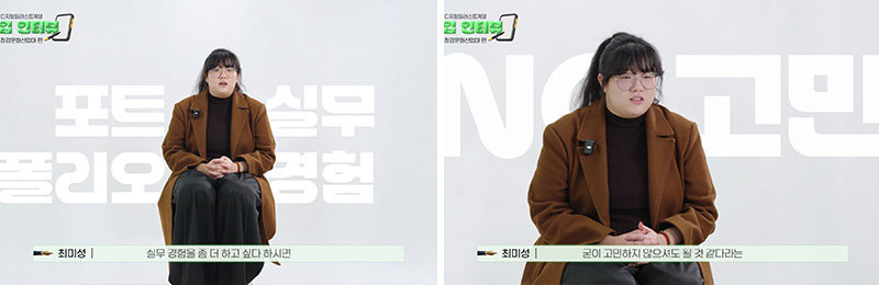 서울호서를 선택한 이유에 대해서도 솔직한 이야기를 들려주었습니다. 실습 위주의 수업으로 실무 경험을 쌓을 수 있고, 포트폴리오를 준비하면서 학사 과정까지 함께 이어갈 수 있다는 점이 큰 장점으로 느껴졌다고 합니다. 편입을 생각하고 있던 자신에게도 잘 맞는 과정이라고 판단했고, 그 선택이 결국 좋은 결과로 이어졌다고 전했습니다.
