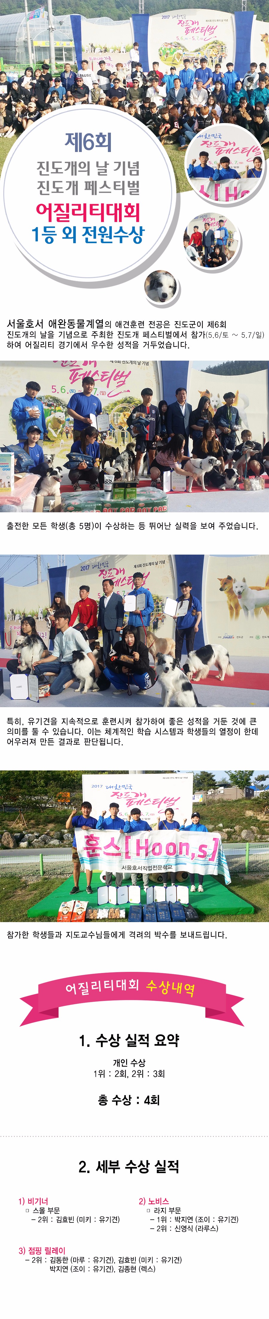 제6회 진도개 페스티벌 어질리티대회 1등 외 전원수상