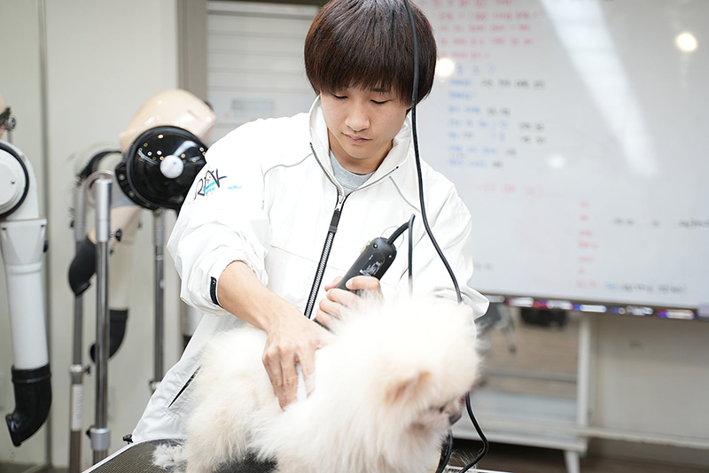 반려동물미용 교수님들의 세심한 지도 아래, 학생들은 털 손질, 위생 관리, 베이싱(세정), 커트 실습 등 한국에서 가장 트렌디한 반려견 미용 기술을 익혀갔습니다.