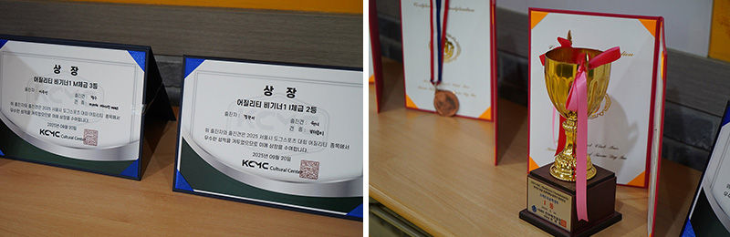 반려견훈련·행동수정 과정 부스에서는 학생들이 재학 중 쌓아온 실무 역량을 증명하는 풍성한 포트폴리오를 선보였습니다. 수많은 상장과 트로피, 자격증 및 활동별 수료증은 2년간의 결실을 말해주었습니다.