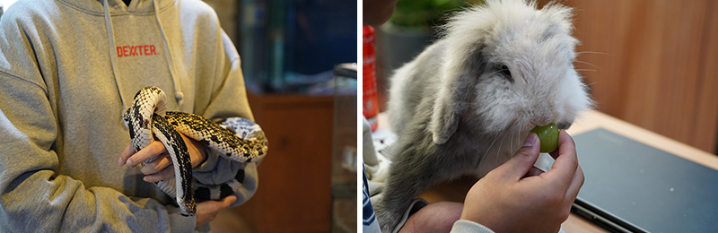 특히 다양한 종류의 뱀을 직접 만져보고 목에 둘러보는 이색적인 체험은 졸업전시회를 찾아준 분들에게 특별한 시간을 선물해주었습니다.