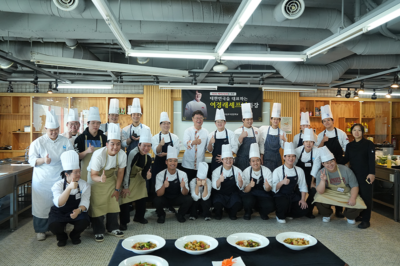 여경래 교수님은 중식 요리 50년 경력의 대가이자, 중국 정부가 선정한 '100대 중국요리 명인'으로 다수의 국제 요리 대회에서 한국 중식의 위상을 드높이신 분입니다. 최근에는 넷플릭스 <흑백요리사>, JTBC <냉장고를 부탁해> 등에 출연하시며 대중들에게도 친숙한 얼굴이 되었는데요, 이번 수업소식에 예비 신입생들의 기대감도 뜨겁게 달아올랐습니다.