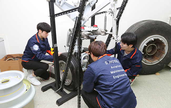 산학협력기관 (티웨이 항공, 제주 항공, STX에어로서비스 등) 실무실습, 파주캠퍼스 정비동 실무실습 진행