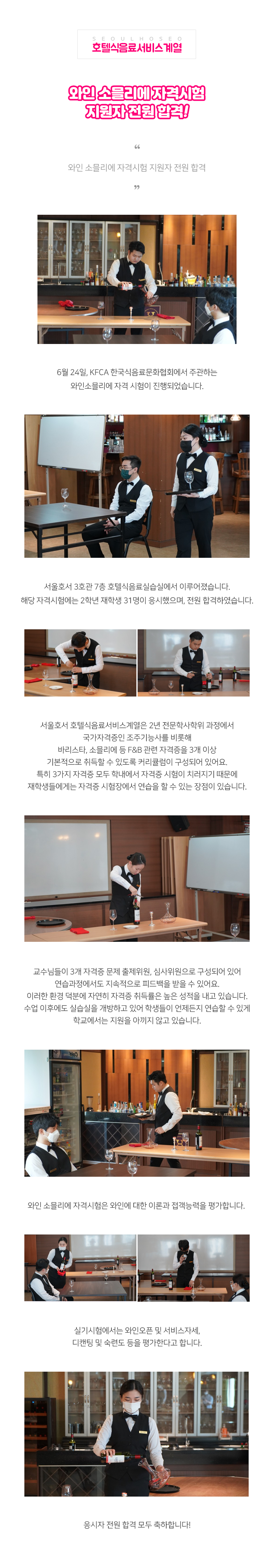 [호텔식음료서비스계열] 와인 소믈리에 자격시험 지원자 전원 합격