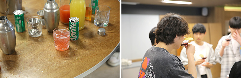 각자의 개성을 담아 완성한 칵테일을 시음하는 학생들의 얼굴에 만족함이 가득했는데요, 직접 만든 칵테일의 맛을 음미하며 보여준 뿌듯한 표정은 이번 체험이 단순한 흥미를 넘어서, 바텐더라는 전문 분야에 한 걸음 더 가까워지는 의미 있는 경험이었음을 보여주었습니다.