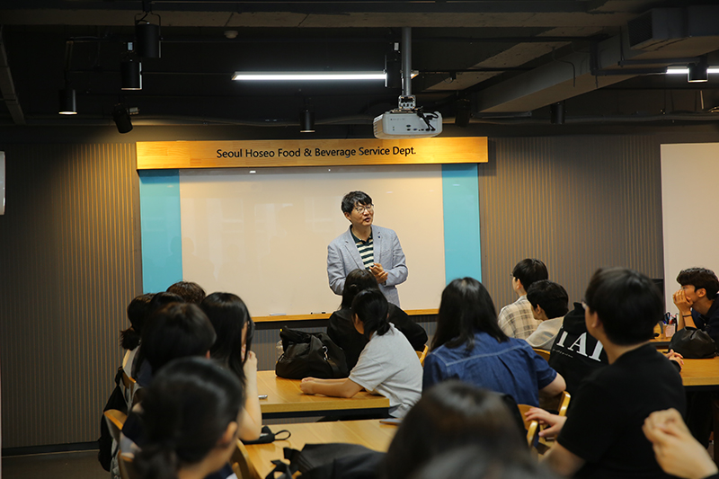 체험 활동 후에는 호텔식음료서비스계열 교수님과의 질의응답 시간이 마련되어 더욱 풍성한 프로그램으로 마무리되었습니다. 전공에 대한 전반적인 소개를 시작으로, 칵테일 분야와 바텐더 직무에 대한 상세하고 전문적인 설명이 이어졌습니다. 또한 참가 학생들이 평소 식음료 분야 전반에 대해 가지고 있던 궁금증이 해소되는 시간이었습니다.