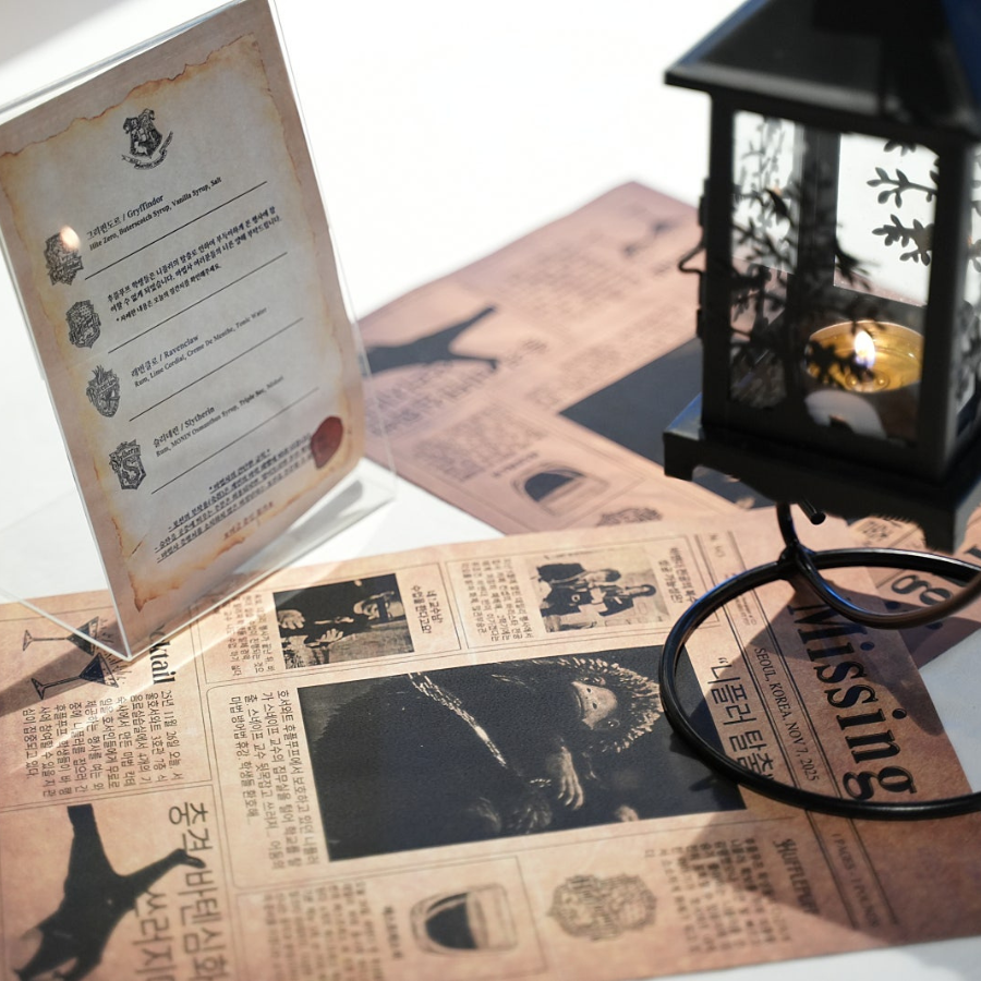 데일리 바에 들어선 순간부터 '호서와트'만의 마법 같은 분위기가 물씬 풍겼습니다! 메뉴판부터 일간지 소품까지, 세심하게 준비된 디테일들은 방문객들을 해리포터 세계로 완벽하게 초대했습니다. 이날 선보인 칵테일은 '그리핀도르', '래번클로', '슬리데린' 세 가지였으며, '후플푸프'는 니플러 탈출이라는 재치 있는 콘셉트로 행사에 부득이하게 참여할 수 없게 되었다는 설명은 방문객들에게 깨알 같은 재미를 선사했습니다.