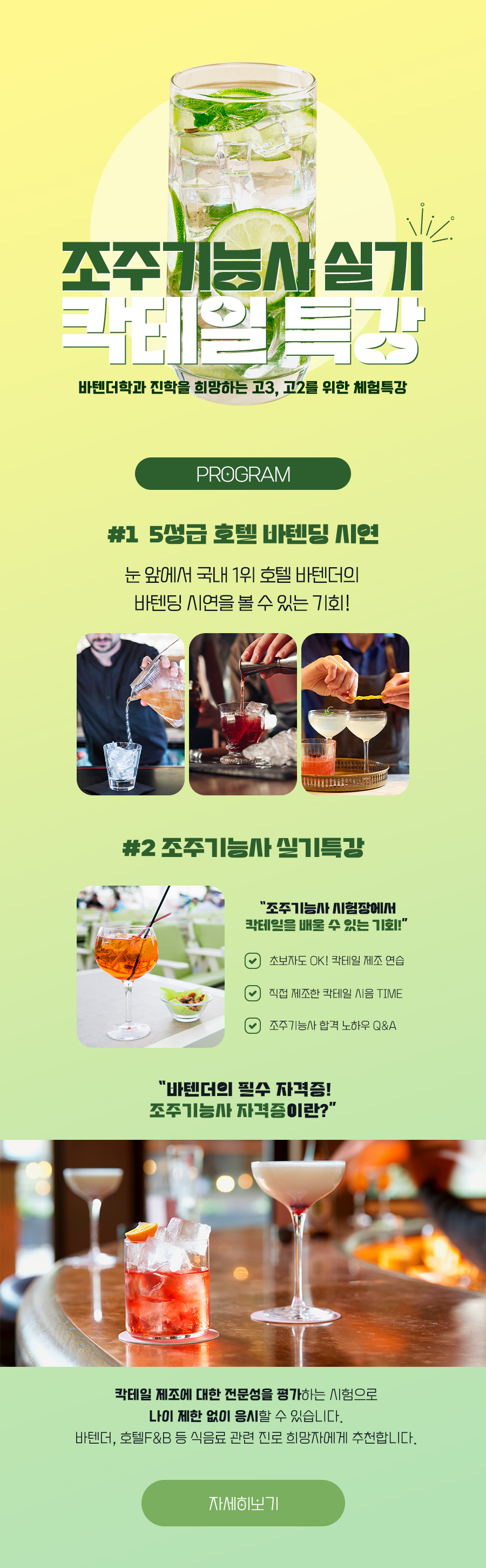 바텐더 진로 체험 및 바텐딩 시연을 볼 수 있는 조주기능사 자격증 실기특강에 초대합니다.