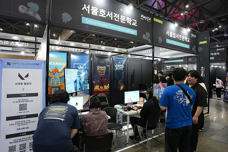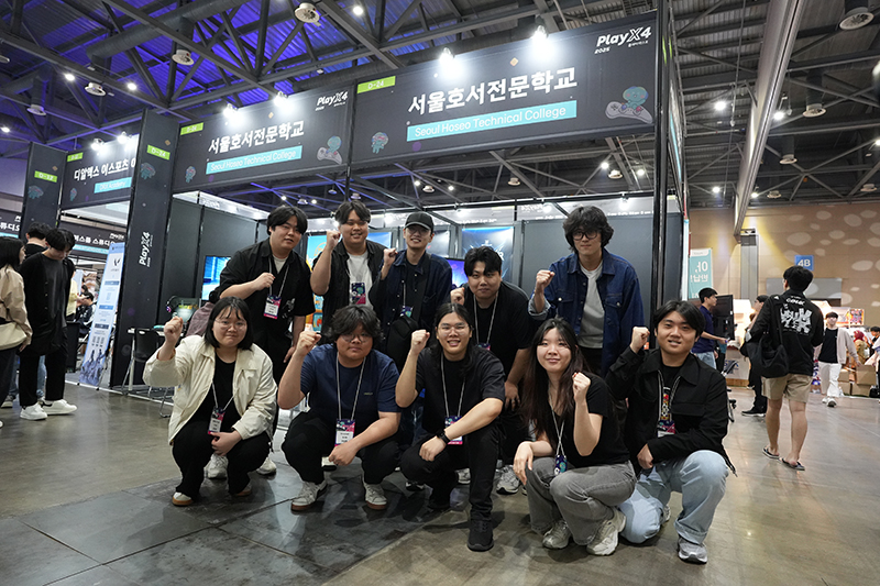 서울호서전문학교 게임계열 지난 5월 22일부터 25일까지 나흘간 일산 킨텍스에서 '2025 플레이엑스포(PlayX4)'에 참가하여 학생들이 직접 제작한 게임을 전시하였습니다.