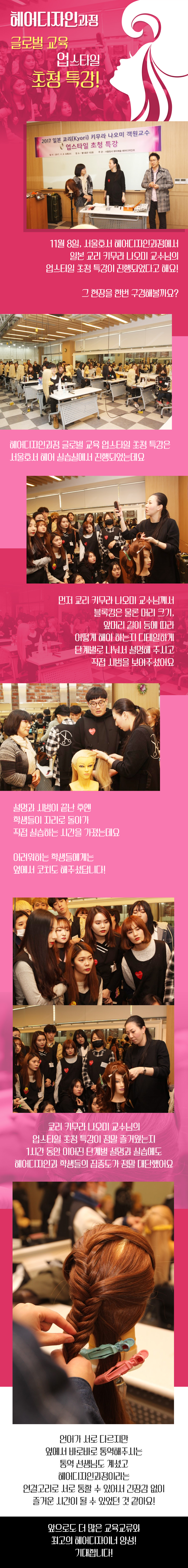 11월 8일, 서울호서 헤어디자인과정에서 일본 교리 키무라 나오미 교수님의 업스타일 초청 특강이 진행되었다고 해요!