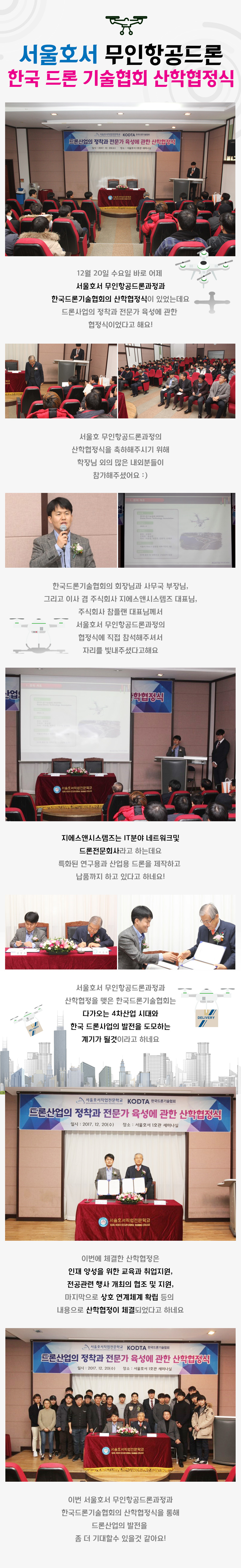 12월 20일 수요일 바로 어제 서울호서 무인항공드론과정과 한국드론기술협회의 산학협정식이 있었는데요 드론사업의 정착과 전문가 육성에 관한 협정식이었다고 해요!