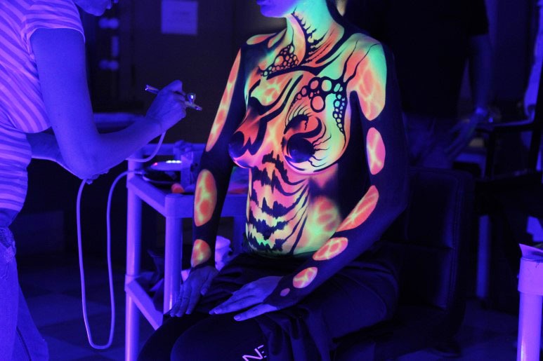 형광 바디페인팅물감을 사용하게 되는데요