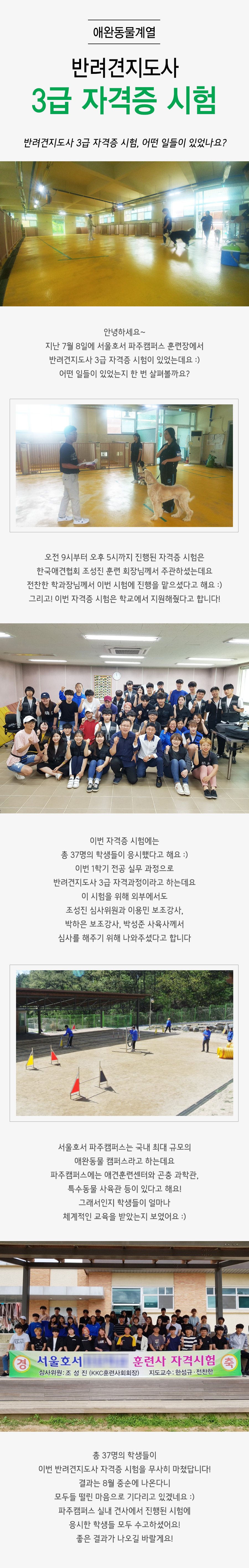 안녕하세요~지난 7월 8일에 서울호서 파주캠퍼스 훈련장에서반려견지도사 3급 자격증 시험이 있었는데요 :)어떤 일들이 있었는지 한 번 살펴볼까요?