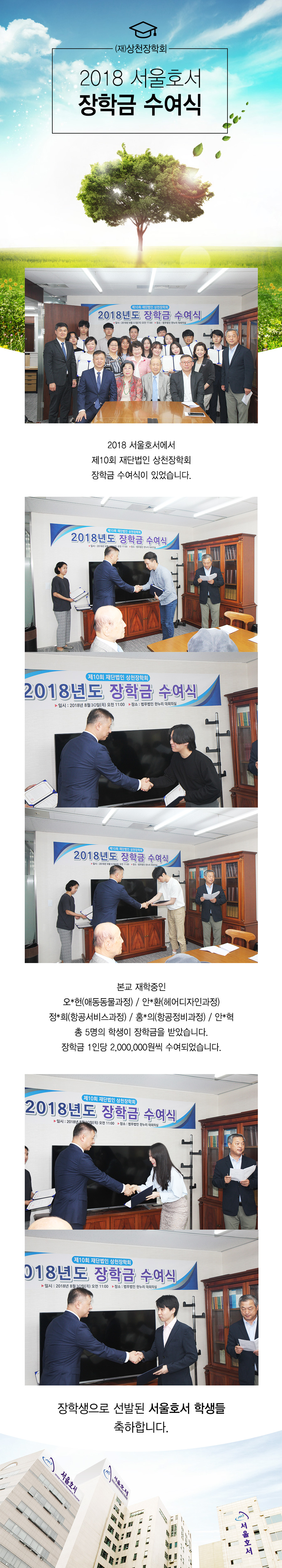 2018 서울호서에서 제10회 재단법인 상천장학회 장학금 수여식이 있었습니다.
