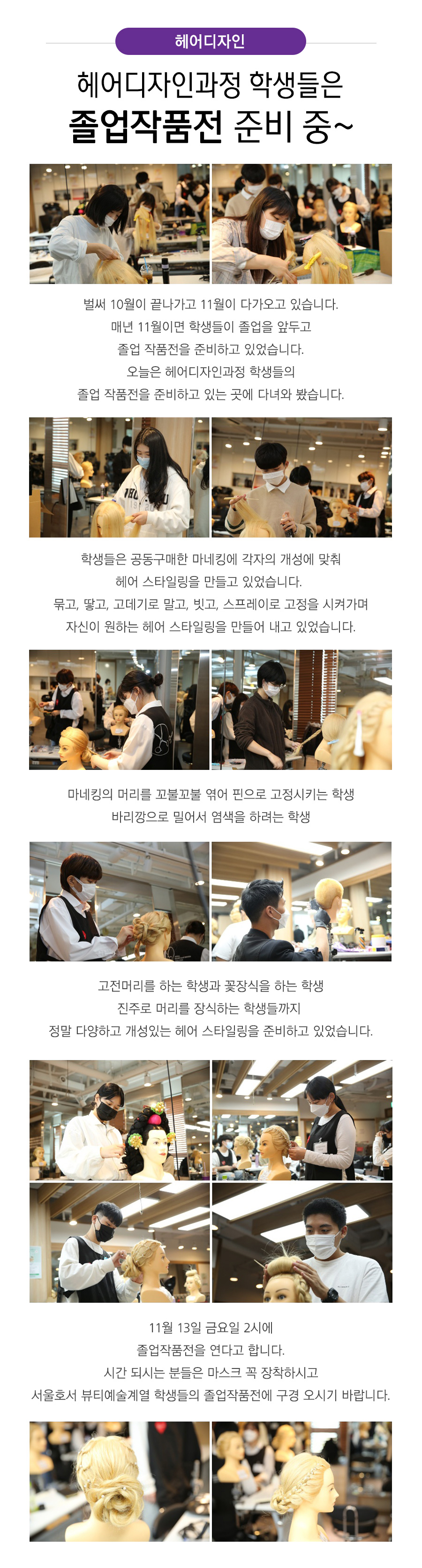 [헤어디자인] 헤어디자인과정 학생들은 졸업작품전 준비 중~