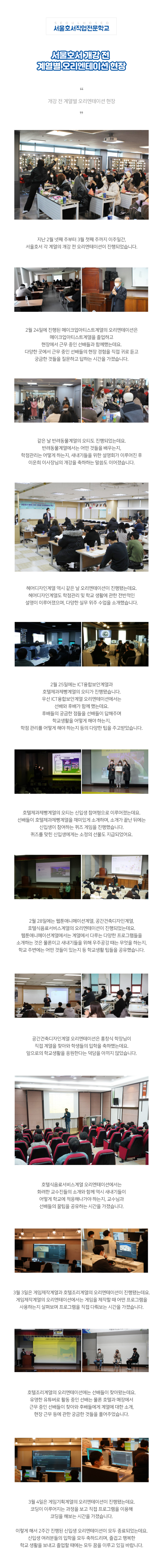 지난 2월 넷째주부터부터 3월 첫째주까지 이주일간, 서울호서 각 계열의 개강 전 오리엔테이션이 진행되었습니다. 2월 24일에 진행된 메이크업아티스트계열의 오리엔테이션은 메이크업아티스트계열을 졸업하고 현장에서 근무 중인 선배들과 함께했는데요. 다양한 곳에서 근무 중인 선배들의 현장 경험을 직접 귀로 듣고 궁금한 것들을 질문하고 답하는 시간을 가졌습니다.