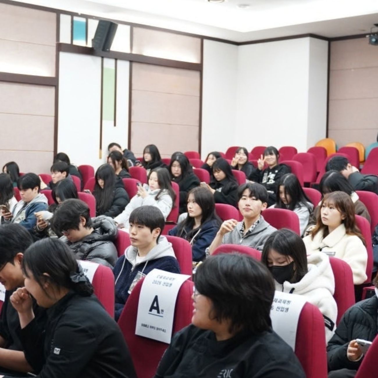 축사가 끝난 뒤에는 각 계열별로 본격적인 오리엔테이션 프로그램이 이어졌습니다. 학생들이 앞으로 배우게 될 전공 교과목 소개를 비롯해 교수진 안내, 졸업 후 진출 가능한 분야와 취업 사례 등 실질적인 진로 정보가 상세히 공유되었습니다. 특히 일부 계열에서는 선배 졸업생들이 직접 학교를 찾아와 후배들과 만나는 뜻깊은 시간도 마련되었습니다.