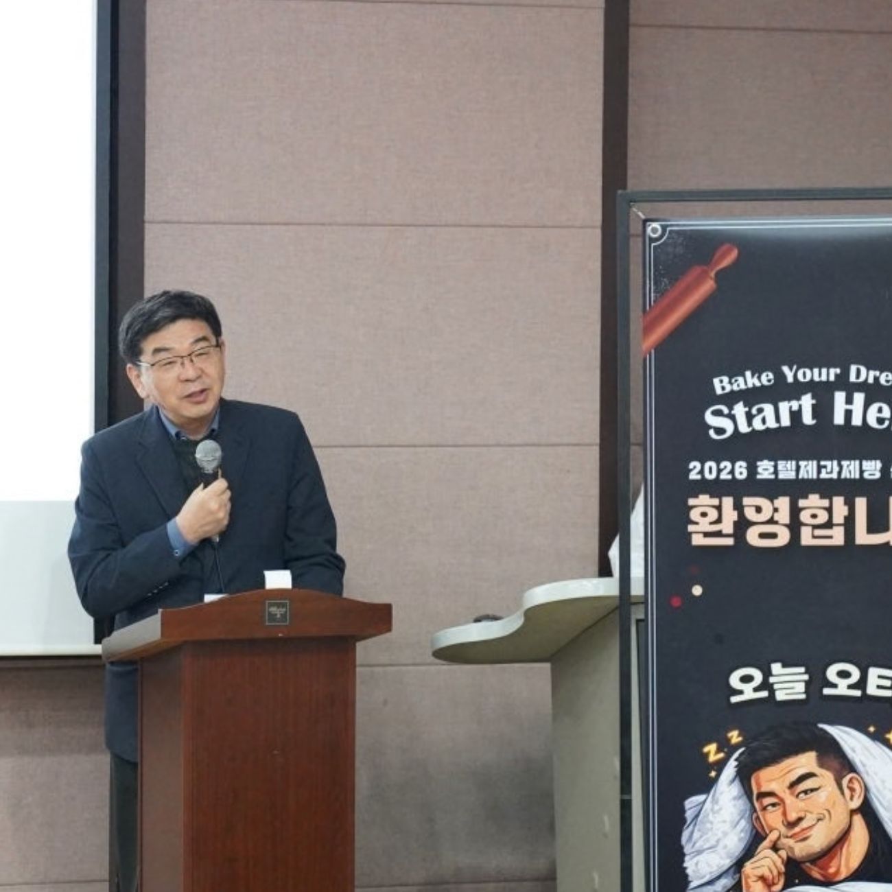 호텔제과제빵계열 오리엔테이션 현장에는 특별한 선배가 방문해 눈길을 끌었습니다. 호텔제과제빵계열을 졸업한 황지오 파티시에가 후배들을 응원하기 위해 학교를 찾은 것입니다. 황지오 파티시에는 최현석 셰프의 파인다이닝 레스토랑 ‘쵸이닷’에서 헤드 파티시에로 근무하고 있으며, 최근 MBN 프로그램 ‘천하제빵’에 출연하며 많은 관심을 받고 있습니다. 황지오 파티시에 이날 업계 경험을 바탕으로 진로에 대한 현실적인 조언을 전하며 후배들에게 큰 응원의 메시지를 전했습니다.