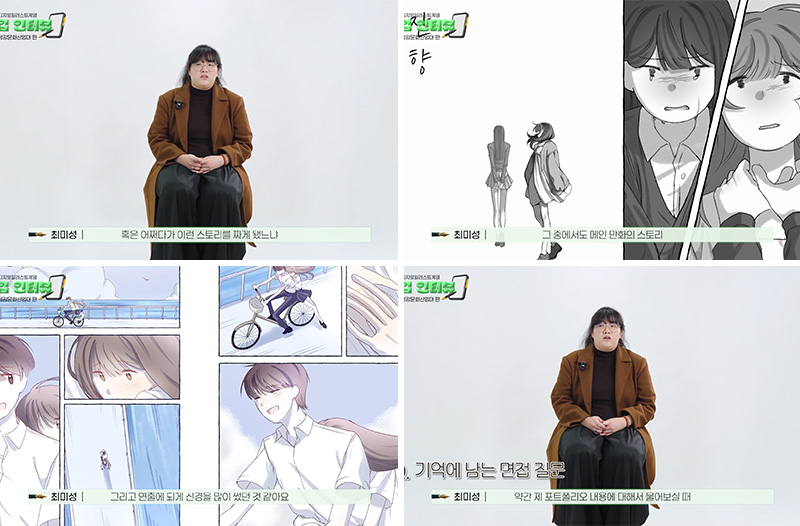 이런 부분은 서울호서에서 수업을 들으며 자연스럽게 쌓아온 경험이 큰 도움이 됐다고 합니다. 수업 시간에 영화를 보고 감상문을 쓰거나, 직접 콘티를 짜보는 과정을 반복하면서 스토리를 구성하는 힘을 키울 수 있었다고 하는데요. 특히 졸업작품을 준비하면서 친구들과 의견을 주고받고 피드백을 나눴던 시간이 포트폴리오를 완성하는 데 큰 밑바탕이 되었다고 전했습니다.