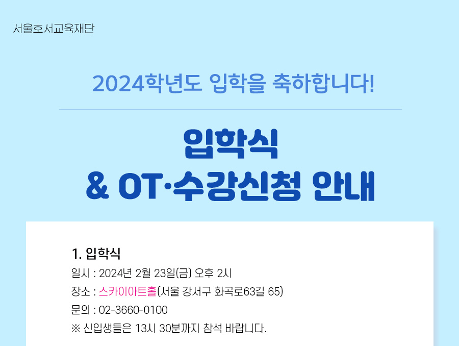 2024학년도 입학식 & OTㆍ수강신청 안내