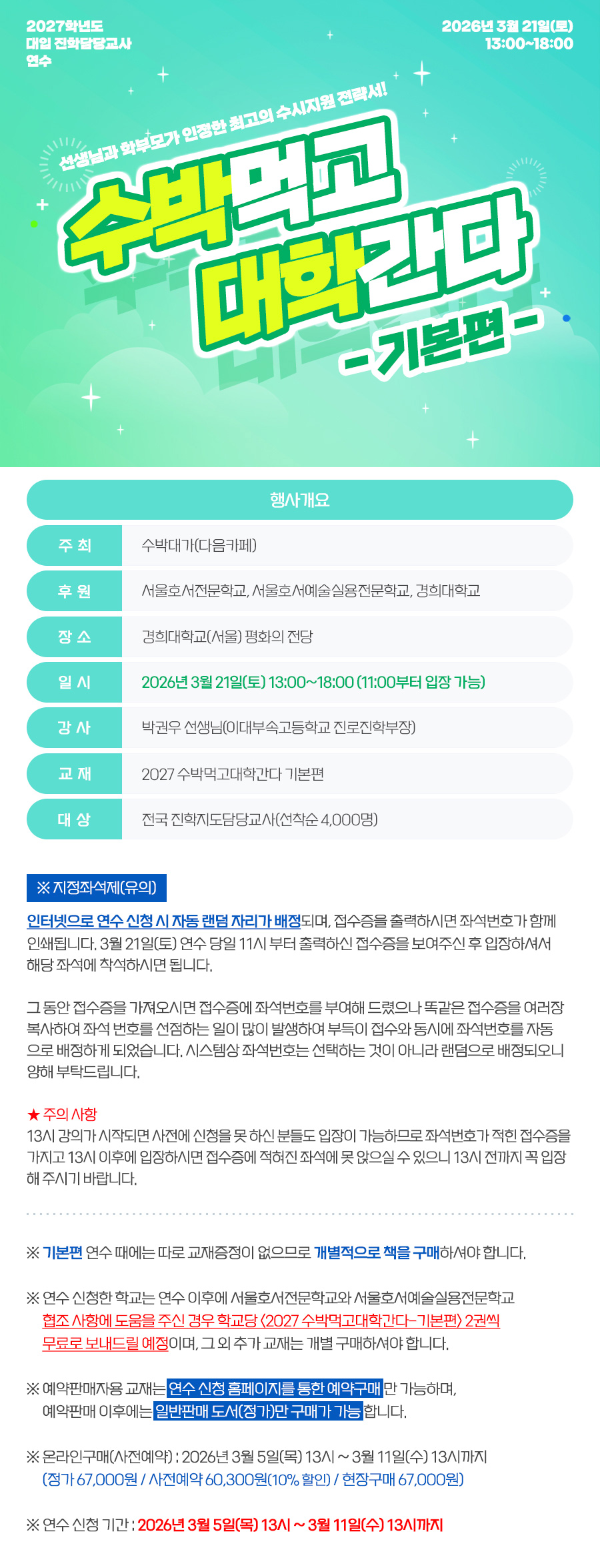 2027학년도 수박먹고 대학간다 [기본편] 연수 신청 안내